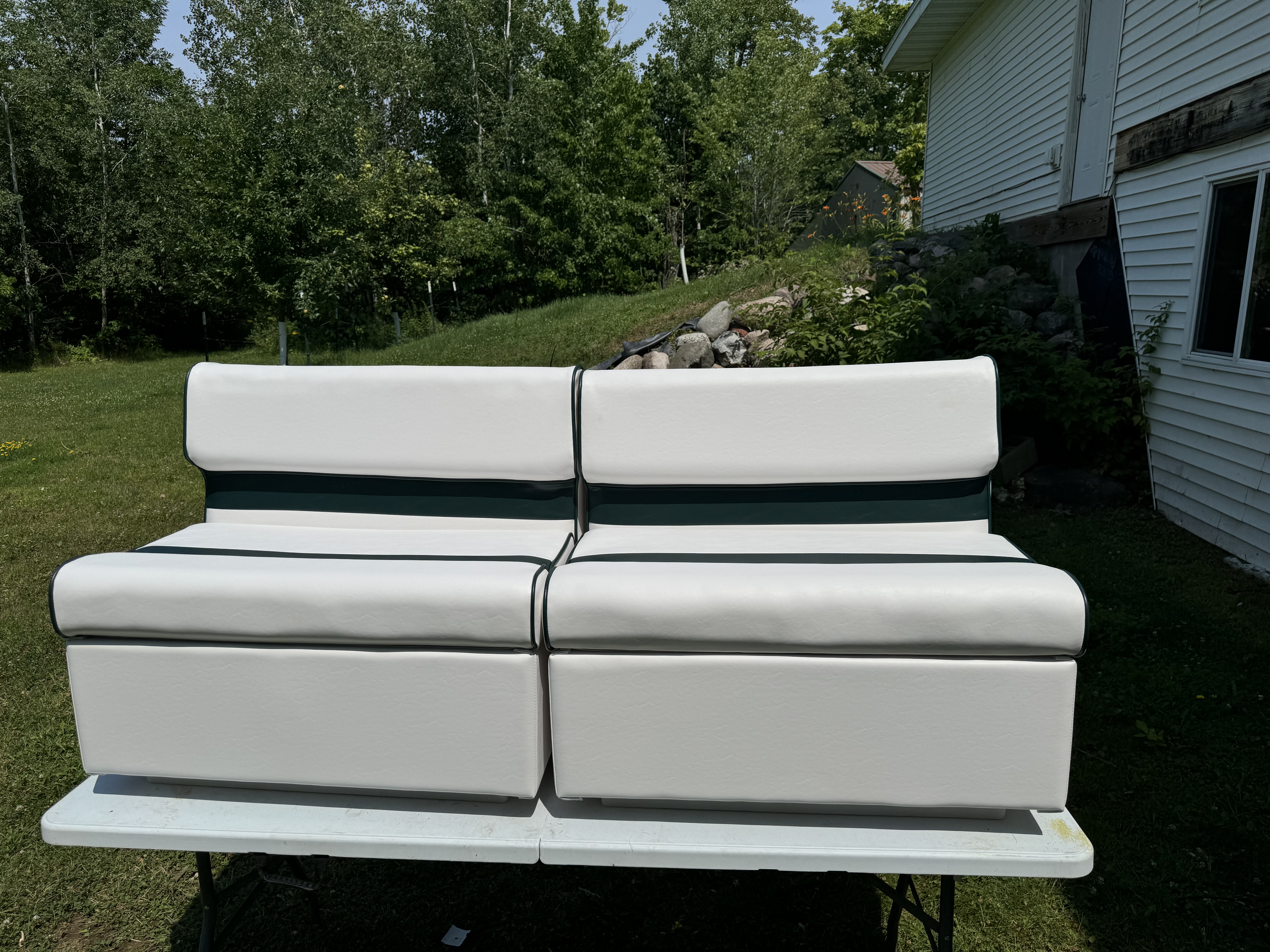 Getting any type of upholstery work can be extremely expensive and it’s hard to be told that the shop is booked out at least six months and we wouldn’t have our boat for the prime summer season. So we got the bright idea to go purchase our own industrial sewing machine and do the jobs ourselves, we were able to find some great suppliers, even a couple located here in Minnesota who helped us pick out affordable and high quality materials. After our projects went well we noticed it’s hard to find someone local who can do this sort of work, we were happy to jump in and serve our community.